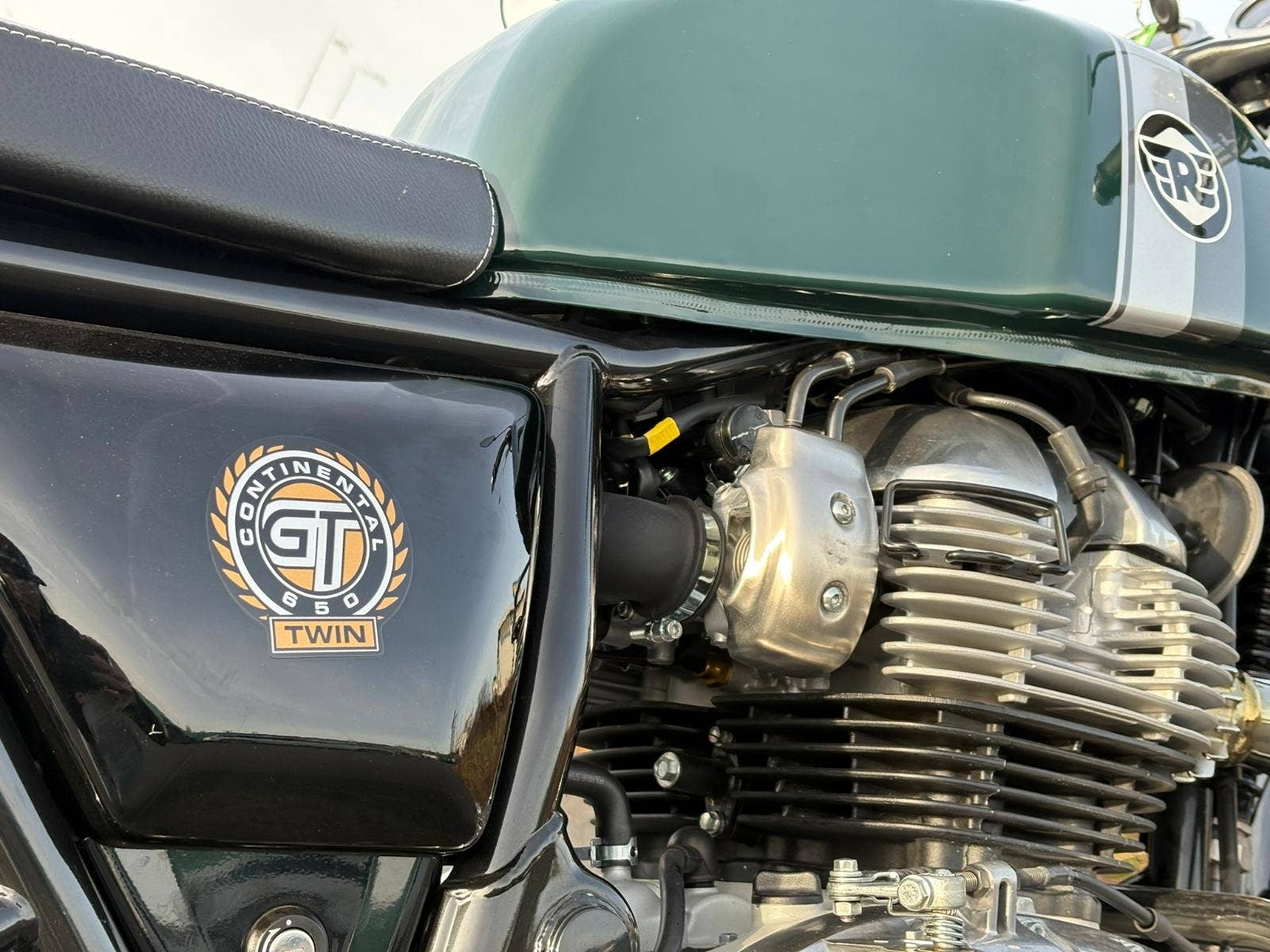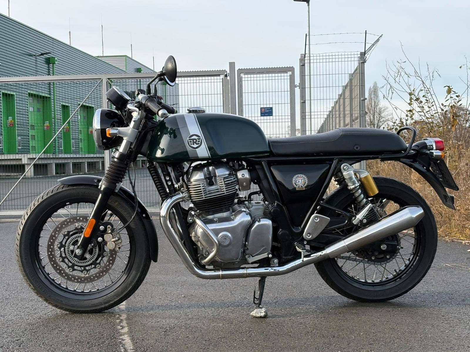 Klasický caferacer Royal Enfield Continental GT650 v klasické barvě British Racing Green. Motocykl má najeto 8580 km, je dovybaven padáky v chromu a samozřejmostí je pravidelný servis. K motocyklu 2x klíč a řádně vedená servisní knížka.
